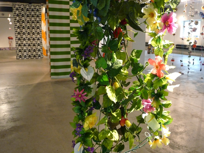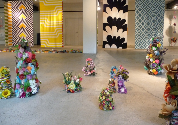 Sagoberättelser was my first effort selecting archival work to include in an exhibition. I chose minimalist textiles and drawings by the late Swedish designer Peter Condu, who died in 1986 from AIDS and whose work was largely forgotten, from the holdings. I juxtaposed his work with my ultra-baroque sculptures, textiles and wallpaper in an effort to cultivate a relationship between historic and contemporary material culture and the sociocultural conditions in which each of us fabricated our practice.