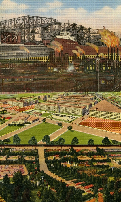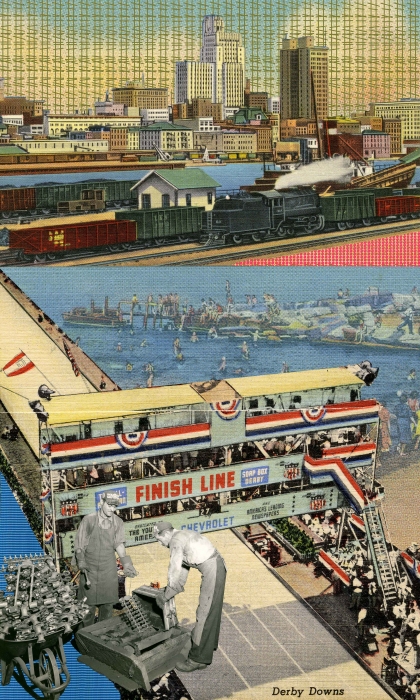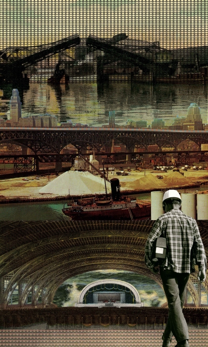 Untold Stories Akron at the Emily Davis Gallery, University of Akron included my imaginary realism prints, curated archival materials I selected from the University of Akron Archives, and three videos featuring on-camera interviews with community members titled Working Class Jobs: Women + Race in the Rust Belt, Akron and Environs: Industrial and Agrarian Labor, and Opie Evans: Jennifer Vanderpool and Arnold Tunstall in Conversation with Marvin and Maddie Evans. Interviewing community members, I learned about racist and bigoted hiring policies at the tire plants, the history of Akron's urban development and the emergence of ethnic neighborhoods, and eventual neighborhood disinvestment. These decisions from a bygone era are still visible in the post prosperity landscapes, lived daily, and perpetuate structural racism. Current and retired workers and labor activists shared their stories about the struggle for the dignity of work and racial and gender equality in the workplace. Academics addressed the prolonged economic, social, and cultural traumas of deindustrialization.
