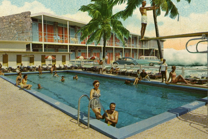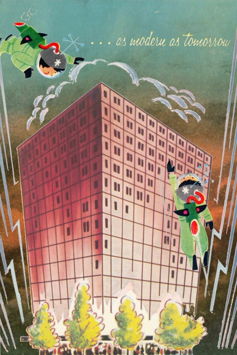 The Modern Series is an ongoing project of archival ChromaLuxe aluminum prints and works on paper. These compositions' subject matter emphasizes the industrial, architectural, and interior design of Mid-century Modernism, once manufactured in the post-prosperity communities that I investigate in my disinvested cities exhibitions. I create these compositions by abstracting and repurposing tourism, fashion, and design advertisements to create imaginary realism compositions evoking Modern culture.
