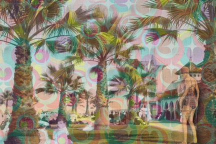 The idea for Super Natural began with a series of conversations with curator Maria Udovychenko. The exhibition was inspired by Russians' fascination with the alluring city of Santa Barbara, which began with the soap “Santa Barbara,” the first U.S. television program to air in Russia in the Nineties after the collapse of the Soviet Union. It portrayed a fantasy world, which contrasted with the hardship of their post-Perestroika daily lives. Super Natural included 17 large-scale and 26 smaller archival photographic interventions, a six-channel video installation, and on-camera interviews with community members in both locations.