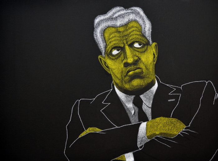 Max King Cap inhabits megalomania through a series of self-portraits as dictators, asking the viewer, “What would you do with unlimited power?” He has asked himself this question and become ashamed of the answer.