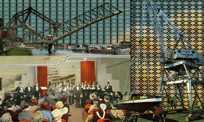Untold Stories Akron at the Emily Davis Gallery, University of Akron included my imaginary realism prints, curated archival materials I selected from the University of Akron Archives, and three videos featuring on-camera interviews with community members titled Working Class Jobs: Women + Race in the Rust Belt, Akron and Environs: Industrial and Agrarian Labor, and Opie Evans: Jennifer Vanderpool and Arnold Tunstall in Conversation with Marvin and Maddie Evans. Interviewing community members, I learned about racist and bigoted hiring policies at the tire plants, the history of Akron's urban development and the emergence of ethnic neighborhoods, and eventual neighborhood disinvestment. These decisions from a bygone era are still visible in the post prosperity landscapes, lived daily, and perpetuate structural racism. Current and retired workers and labor activists shared their stories about the struggle for the dignity of work and racial and gender equality in the workplace. Academics addressed the prolonged economic, social, and cultural traumas of deindustrialization.