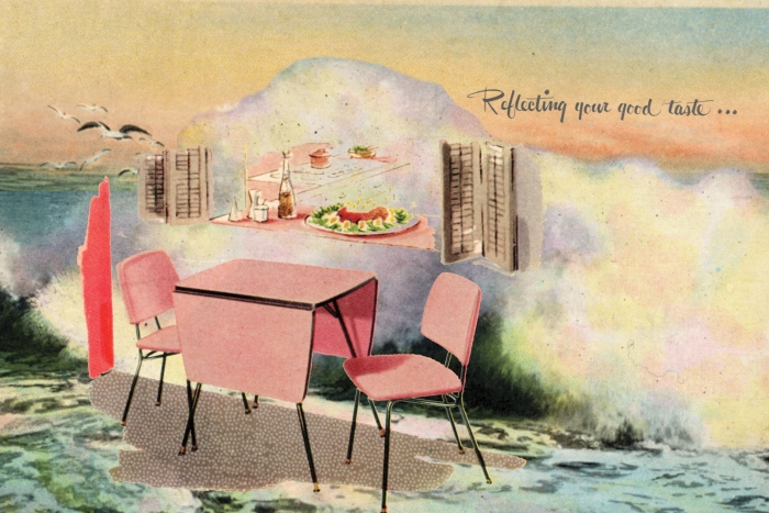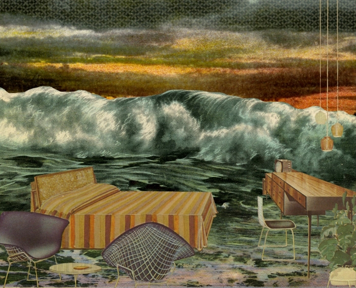The Modern Series is an ongoing project of archival ChromaLuxe aluminum prints and works on paper. These compositions' subject matter emphasizes the industrial, architectural, and interior design of Mid-century Modernism, once manufactured in the post-prosperity communities that I investigate in my disinvested cities exhibitions. I create these compositions by abstracting and repurposing tourism, fashion, and design advertisements to create imaginary realism compositions evoking Modern culture.